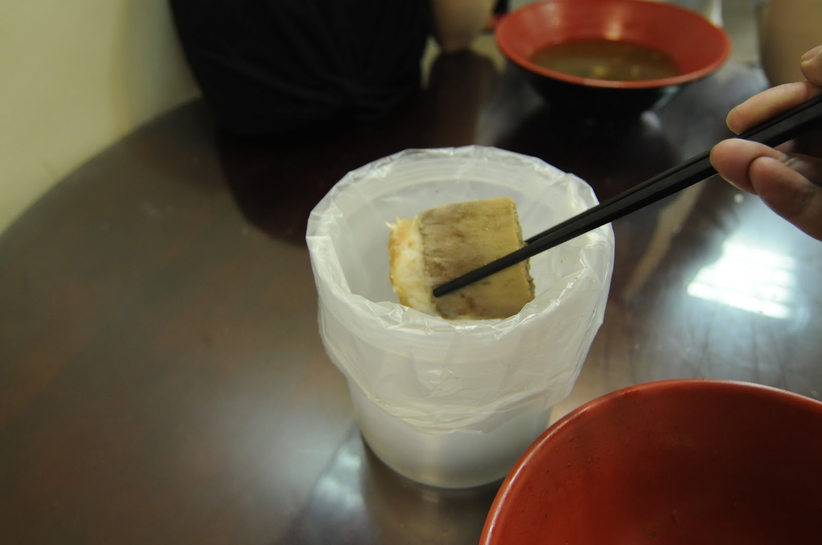最後店家每桌上都有放個廚餘桶 , 方便客人吃到一半牛骨頭可以先扔入
