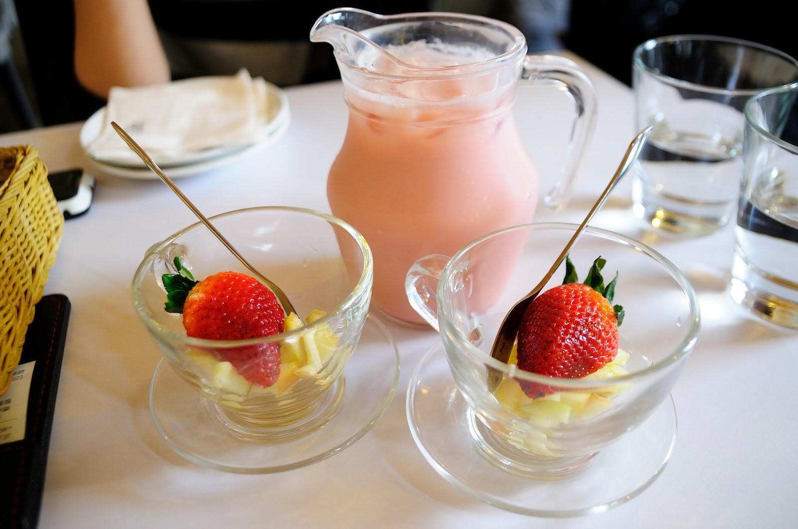我們點了冰的法式草莓奶茶+一組杯組