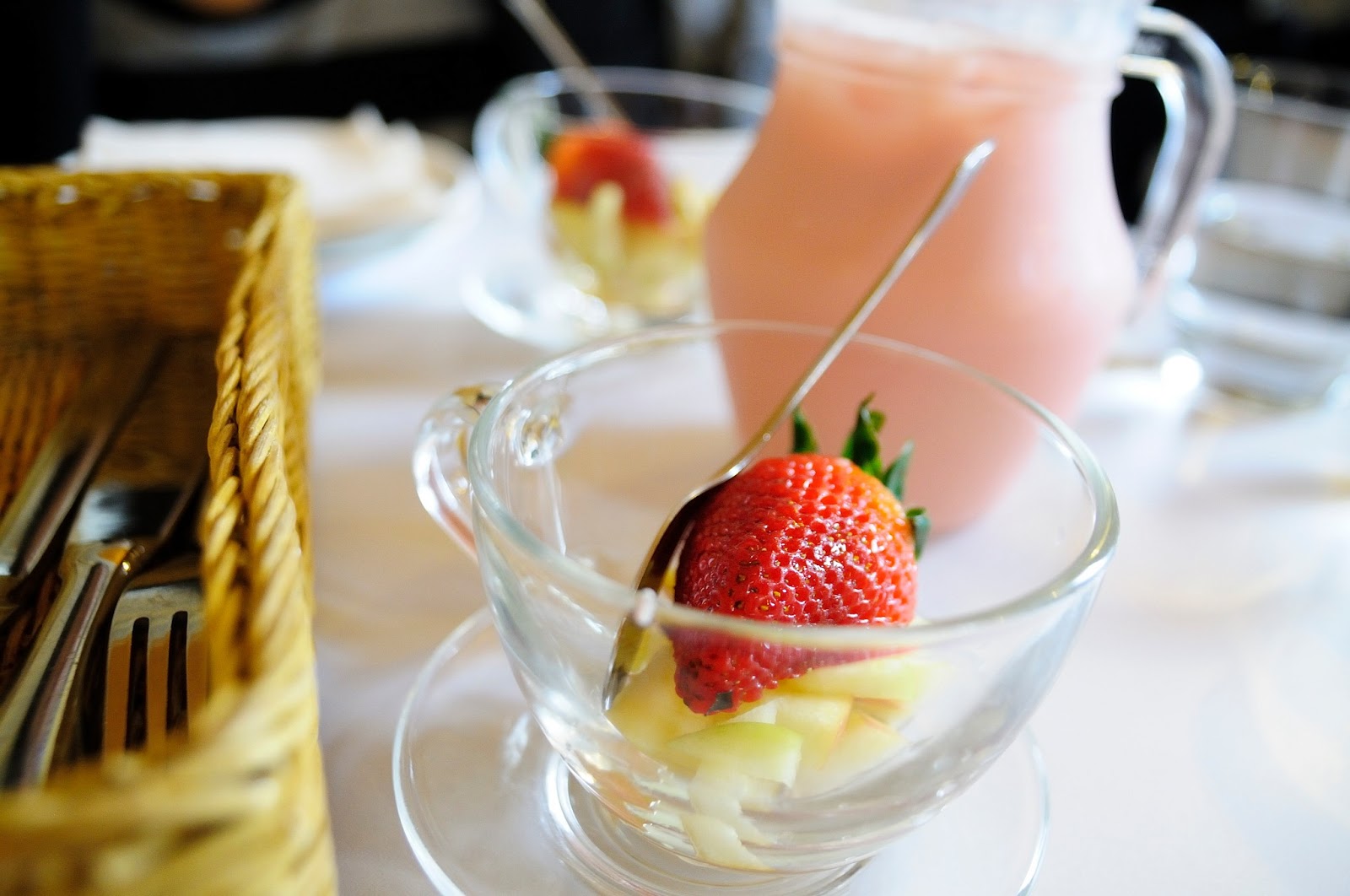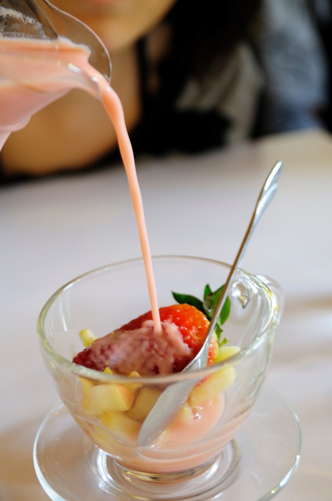 好在送來的分享杯組裡面也還有附上水果 , 有蘋果和半顆超大草莓